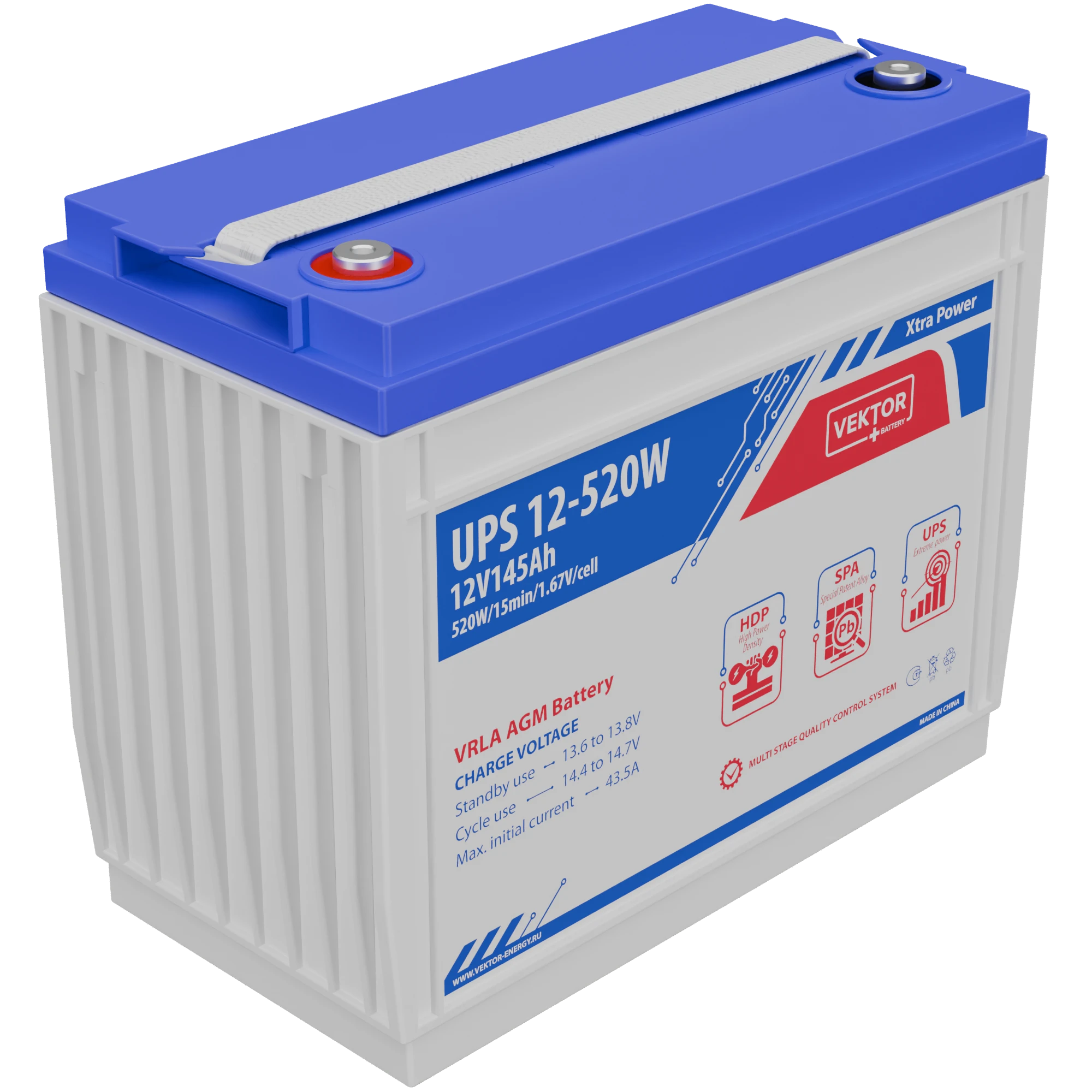 VEKTOR BATTERY серия UPS – это современные герметизированные AGM-аккумуляторы с технологией VRLA, предназначенные для ИБП средней и высокой мощности, включая оборудование ЦОД и других критически важных систем. Ключевая особенность запатентованный сплав Pb-Ca-Sn-Al, обеспечивающий высокую энергоэффективность и надежную защиту от коррозии. Оптимизированная конструкция решётки с усовершенствованным активным материалом и пастой обеспечивает минимальное внутреннее сопротивление и стабильную работу при высоких нагрузках в режимах разряда от 5 до 90 минут. Аккумуляторы серии UPS обеспечивают прирост выходной мощности более 30% по сравнению с классическими моделями той же ёмкости. Рабочий температурный диапазон от -20°С до +60°С позволяет использовать их в самых разных условиях. Ресурс службы в буферном режиме — более 15 лет (Eurobat, Long Life).