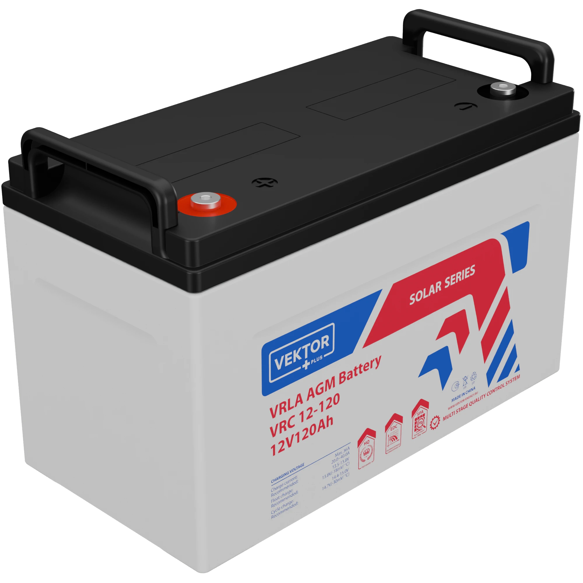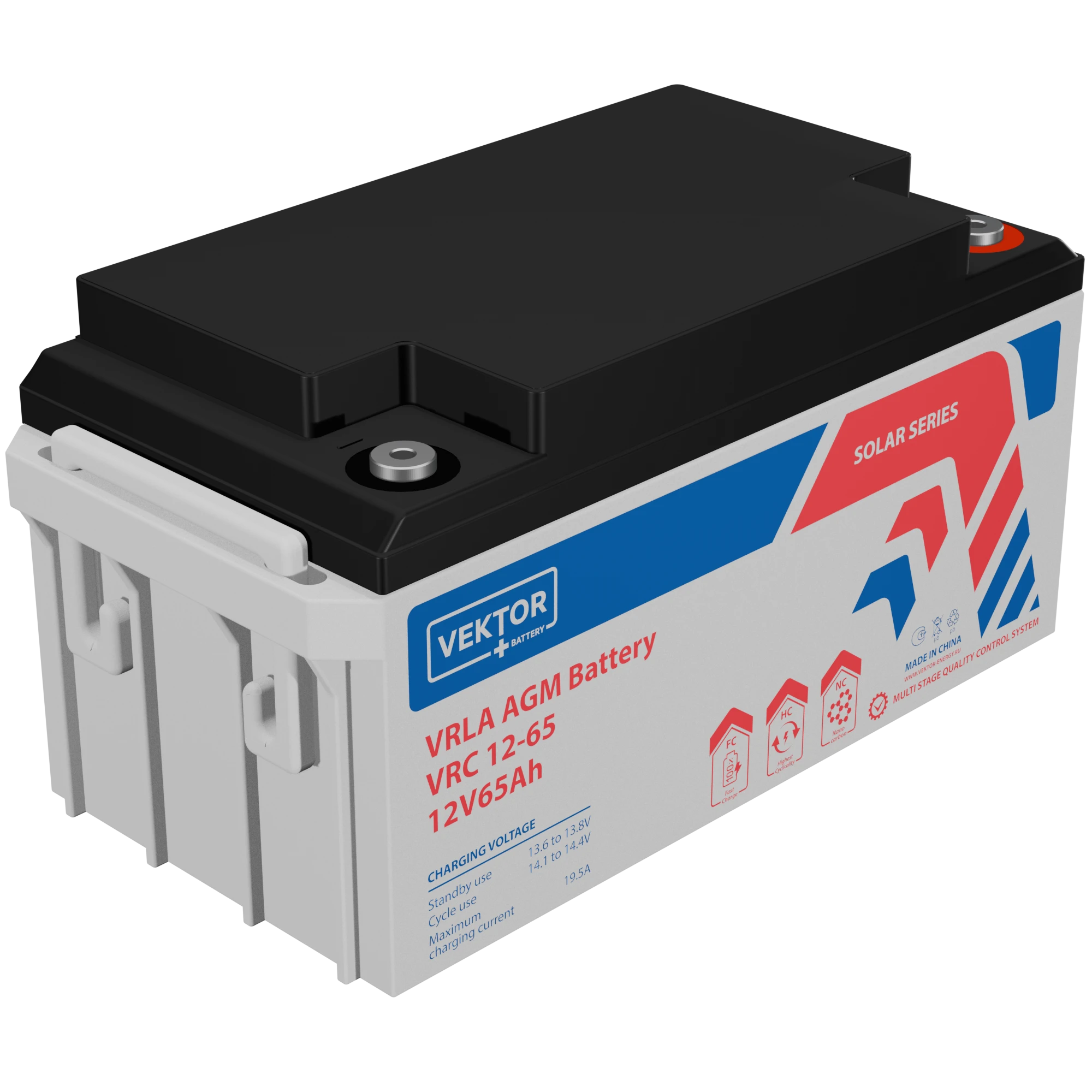 Аккумуляторные батареи серии VRC произведены по технологии AGM (Absorbent Glass Mat – электролит абсорбирован в стекловолоконном мате-сепараторе) + CARBON NANOTUBES. В составе активной массы отрицательной пластины применяются графеновые волокна, что препятствует ее разрушению. Технология CARBON обеспечивает выдающуюся устойчивость к глубоким разрядам и высокую температурную стабильность в условиях интенсивной эксплуатации. Аккумуляторы серии VRC идеально подходят для работы в солнечных и ветровых электростанциях, системах электроснабжения, в системах компенсации пиковых нагрузок, где требуется высокая цикличность, надёжность и устойчивость к глубоким разрядам.
