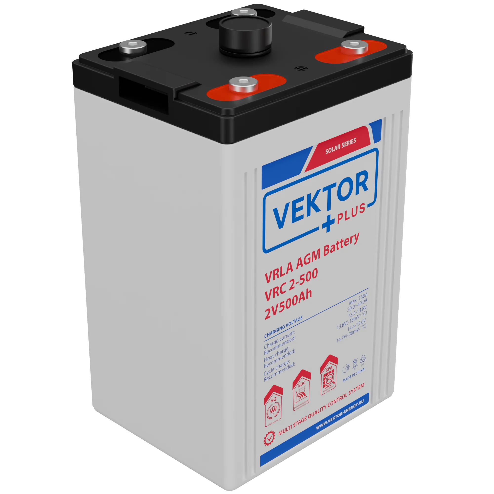 Аккумуляторные батареи серии VRC произведены по технологии AGM (Absorbent Glass Mat – электролит абсорбирован в стекловолоконном мате-сепараторе) + CARBON NANOTUBES. В составе активной массы отрицательной пластины применяются графеновые волокна, что препятствует ее разрушению. Технология CARBON обеспечивает выдающуюся устойчивость к глубоким разрядам и высокую температурную стабильность в условиях интенсивной эксплуатации. Аккумуляторы серии VRC идеально подходят для работы в солнечных и ветровых электростанциях, системах электроснабжения, в системах компенсации пиковых нагрузок, где требуется высокая цикличность, надёжность и устойчивость к глубоким разрядам.