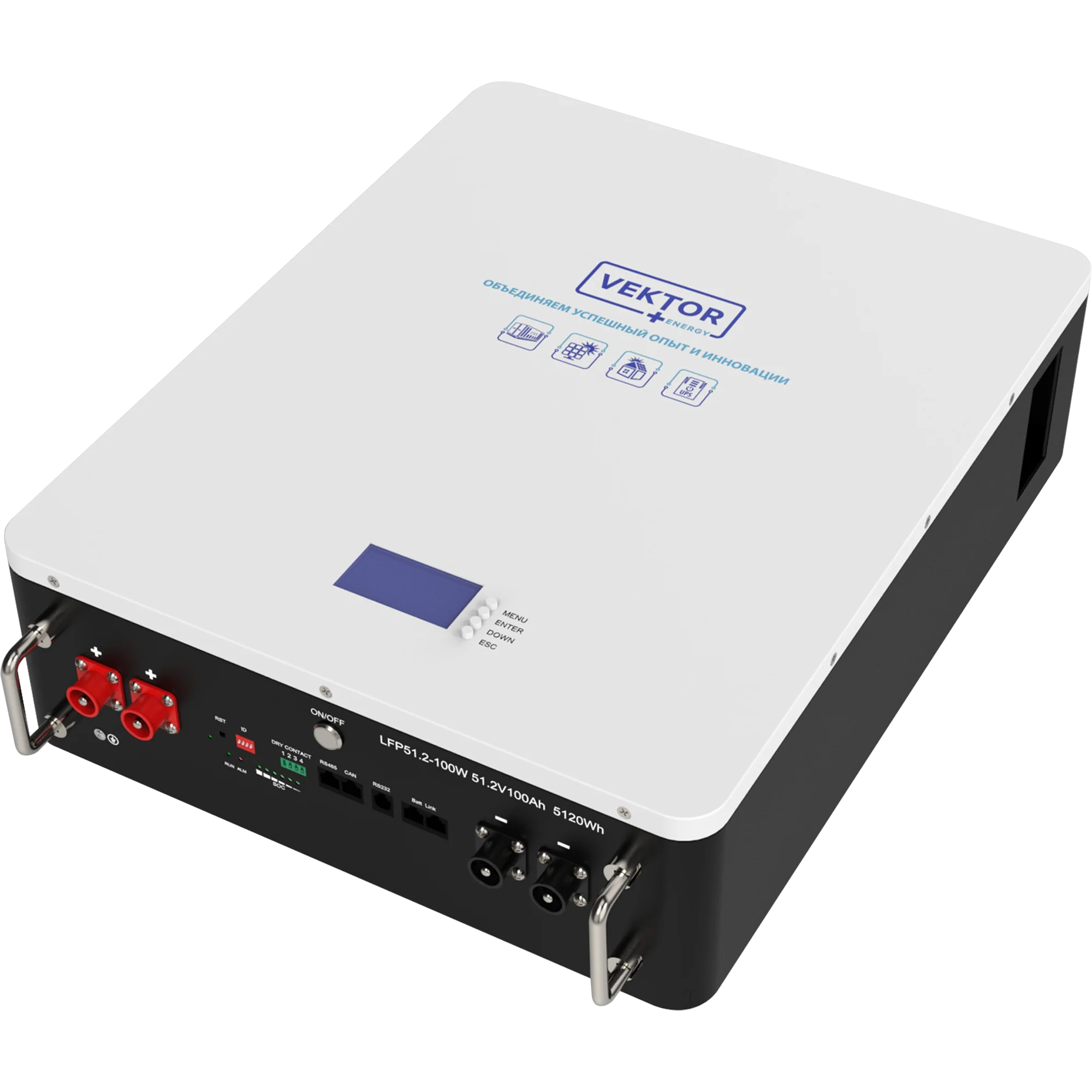Настенная литий-ионная аккумуляторная батарея для домашнего электроснабжения. Создана как для работы с солнечными гибридными инверторами, так и для резервного электропитания.