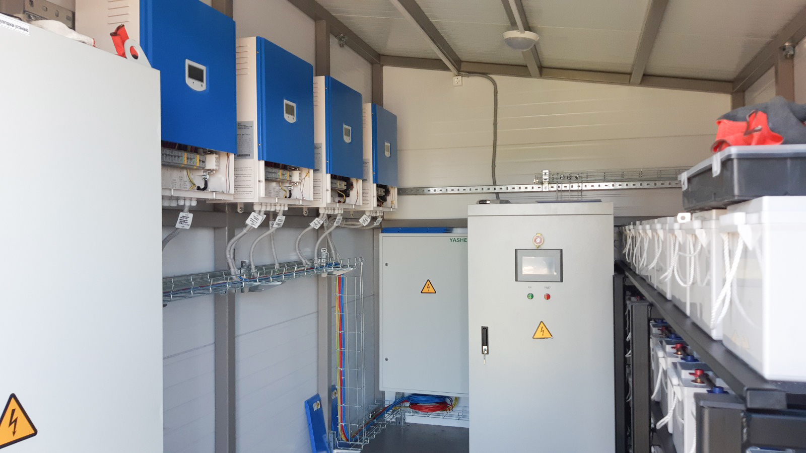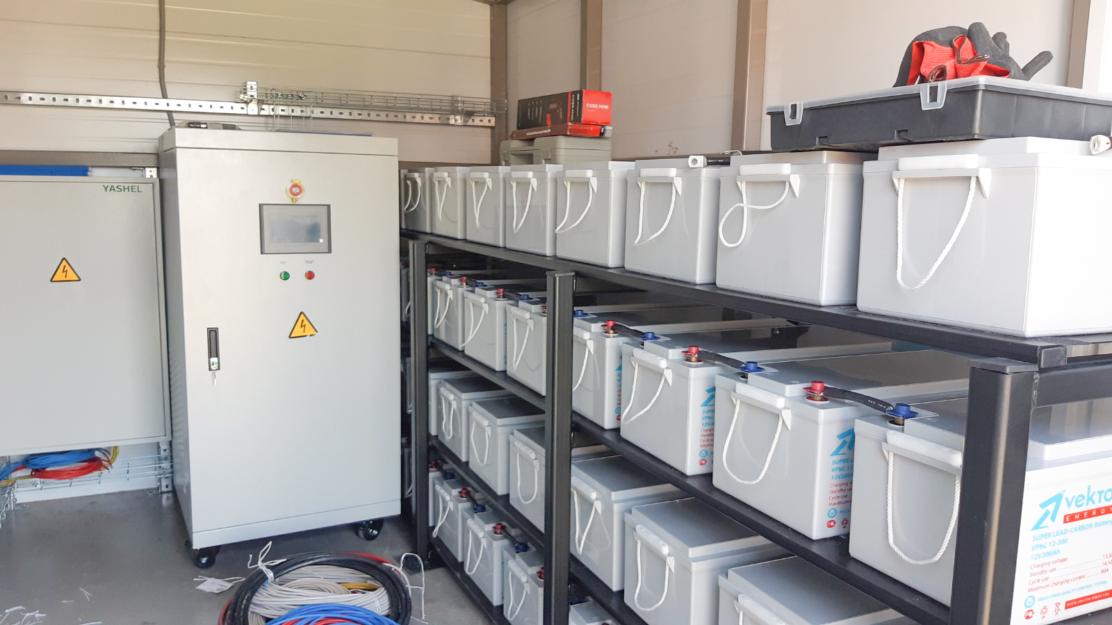Проект реализован на базе многофункциональной ветроэлектростанции мощностью 60кВт. с накопителем и отдачей выработанной энергии от ветрогенераторов в установленное время во внутреннюю АЗС параллельно с городской сетью.Гибридная ветряная электростанция предназначена для экономии электроэнергии потребляемой из городской сети, с возможностью резервирования на случай отключений.
